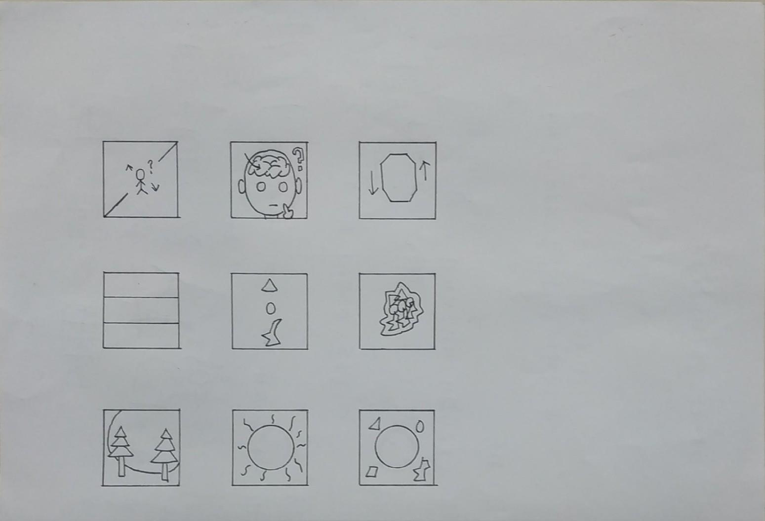 主要是要呈現現實世界是充滿挑戰的,從下方混亂的空 間,想辦法找到通往上方相較整齊的空間,是需要勇氣的, 呼應轉譯圖所呈現,慢慢凝聚的過程,是充滿挑戰的,故