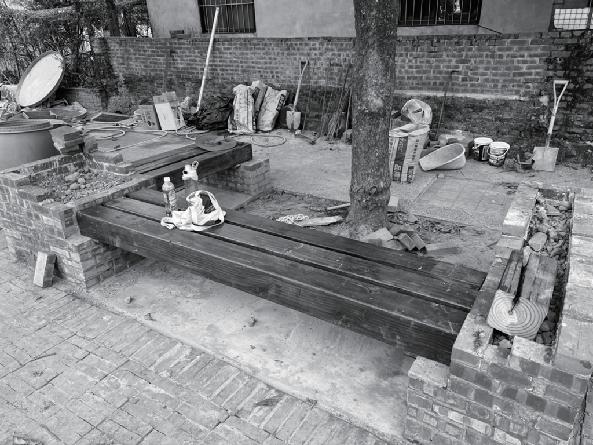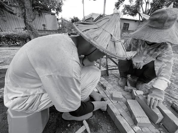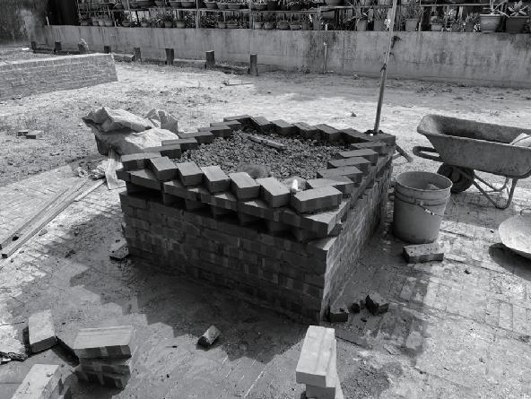 �.砌座椅:從拉水線的方法,到砌磚的巧勁,我們花 了一段時間適應,得知磚的砌法有很多也更加認識 磚這個材料