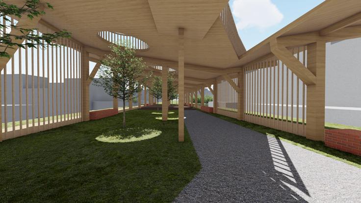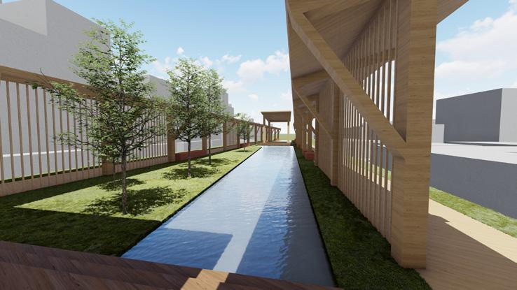 Capture Taichung's green corridor, analyze the relationship between people, panels and nature, and try to transform penetrability and spatial changes into a lecture space