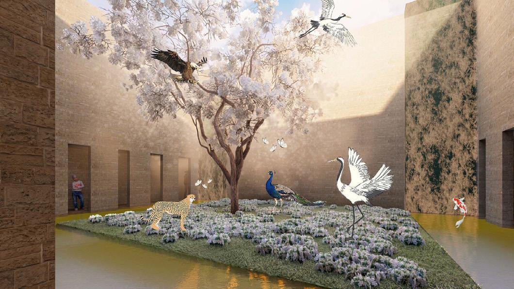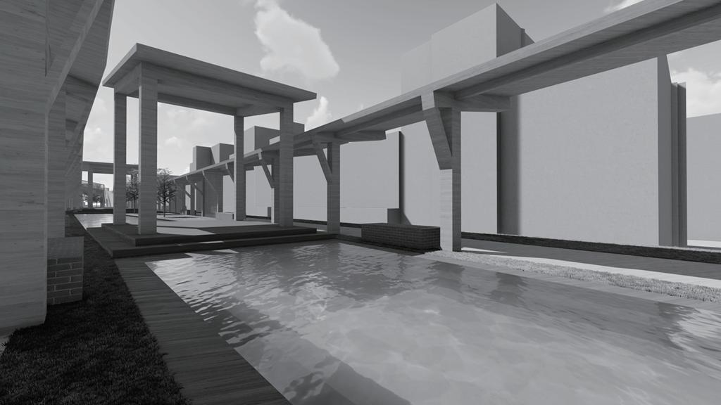 在機能上強調展覽的重要性, 蒐集此世界上的特性碎片,透過水文象徵的針線 一針一針縫紉在基地上,帶領使用者 重新回味此世界,並加入演講行為,加強文資的 推廣,而失去的活力,則是透過虛空間的加強 像是視線上的串聯,模糊 等,以及敷地上的設計上,去進行點燃活力