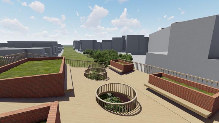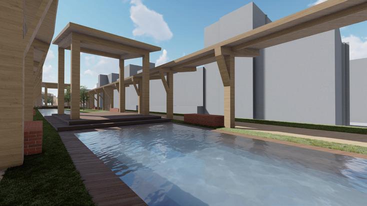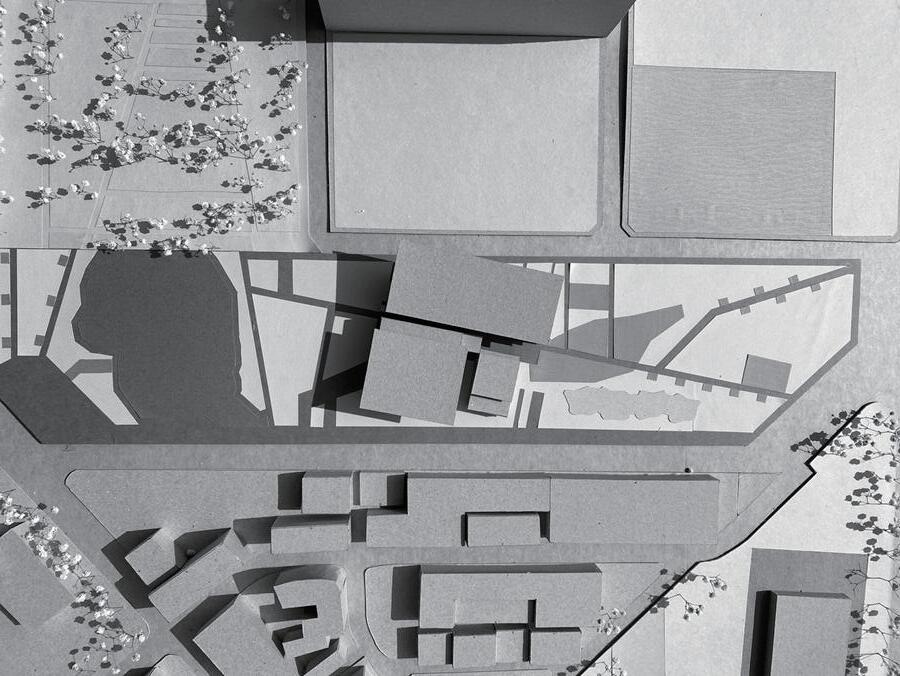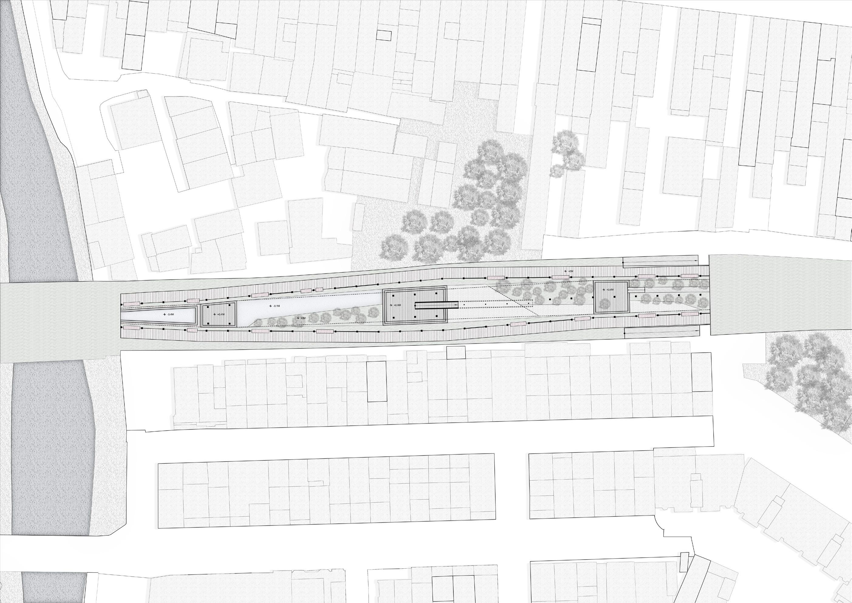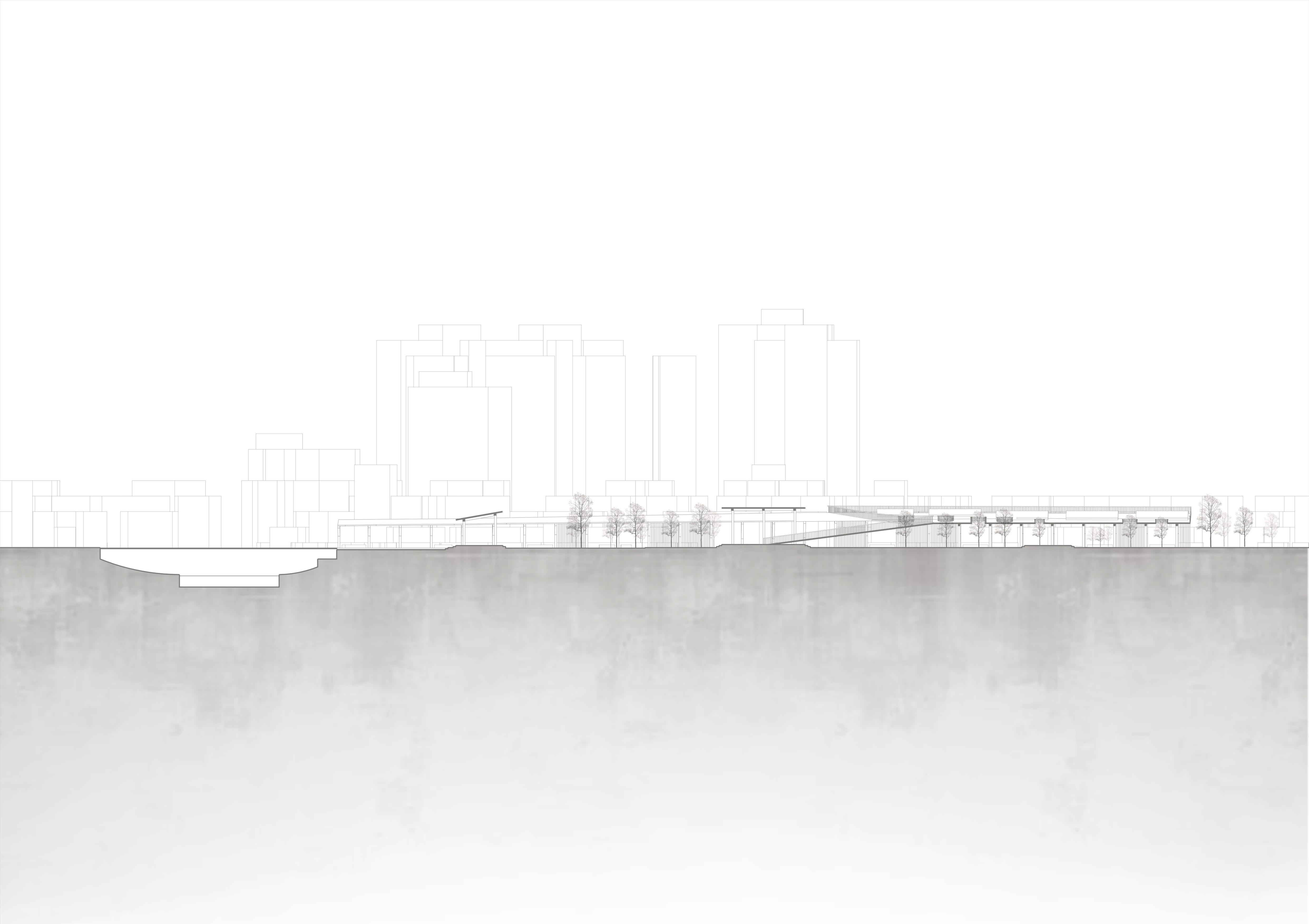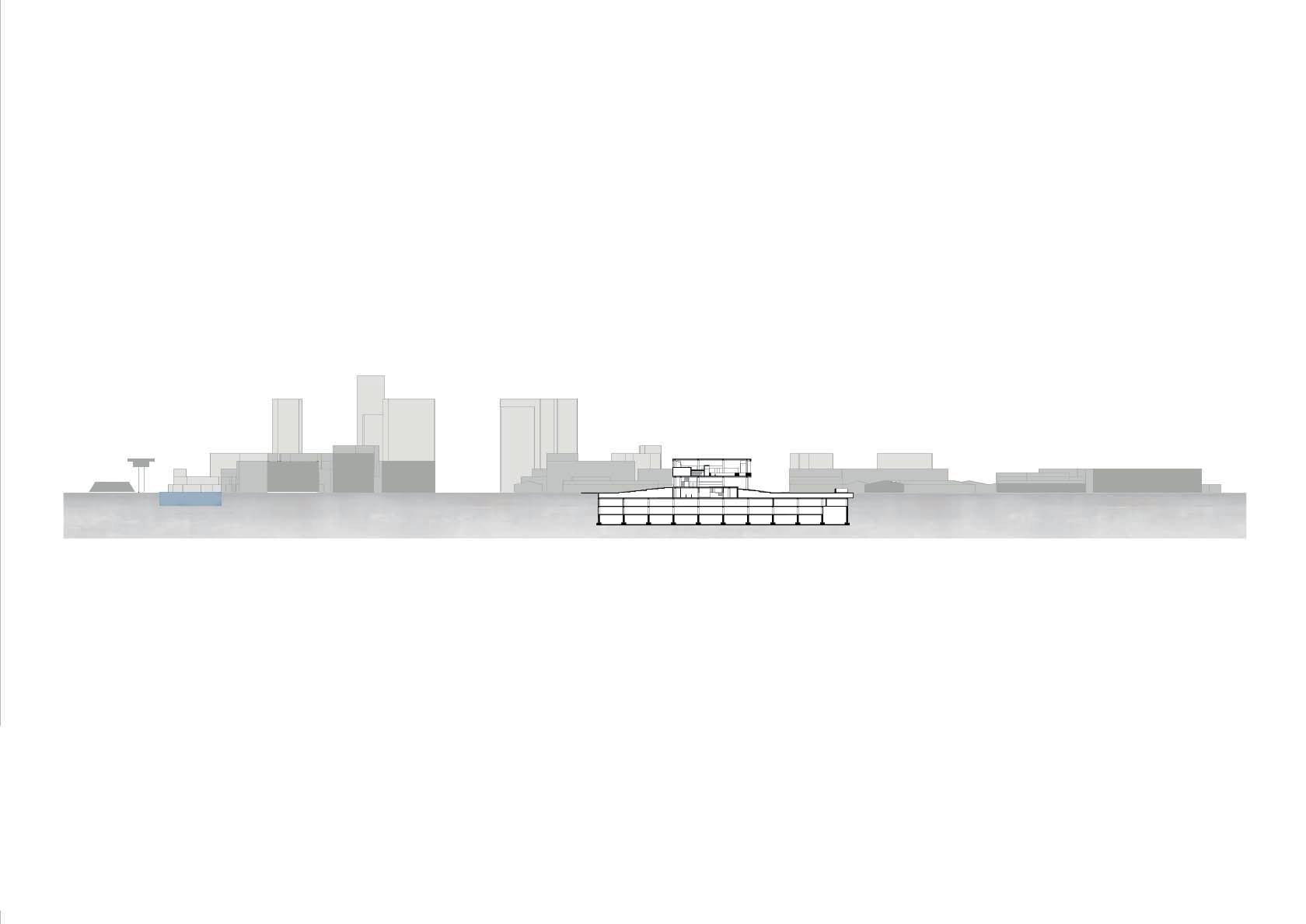希望這個設計能跟當地結合,所以經歷了過去居民們對於 綠地的強烈反對,我的介入主要先找了一個立足點,消弭 未來基地北側的商業大樓所帶來的天際線變化,再來是讓 社區空間擠入運動中心,所以游泳池等相關機能才會被抬 升至高處,而建築計畫則是配合讓居民路過的使用方式