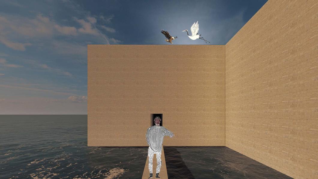 基地設定為一片汪洋,暗示著人們在目光鎖定事物之前,都是荒蕪目的的 一執行走著,直到發現一個值得前往的點,就會出現一條向前的路線,但 結果是好是壞,無從得知,只能勇往向前