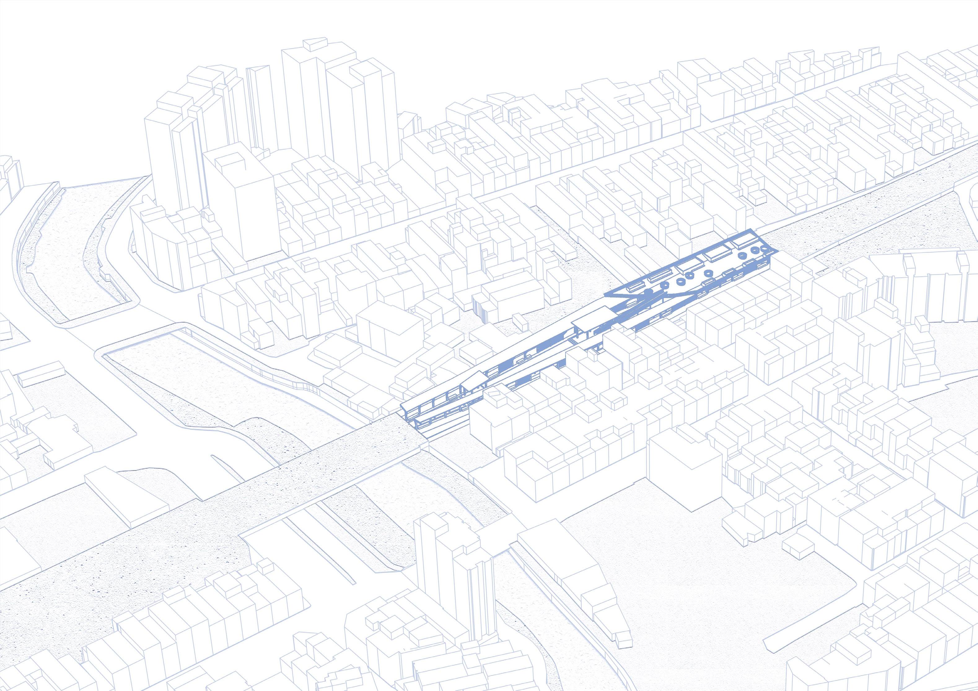 In the past, the railway cut through Taoyuan, but as the railway becomes underground, the above-ground railway will be replaced by the Green Park Road in the future, which is a space full of unknowns for now. In ����, with the rapid expansion of cities, green Park Road may be the only remaining ecology, but will people still be able to freely shuttle through the city?