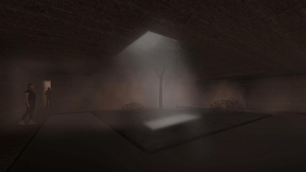 這是一個認識一個東西的過程,現實的很多東西都是擁有著虛假的表面,而內心卻是有如般的真實,因 此在動線體驗上嘗試去貼合這樣的過程,從一開始的吸引到向前體驗,而後接踵而來的是黑暗的真實, 諷刺的是在虛假的表面看到的漂亮的水,卻是內心世界黑暗的來源,擋住了大部分的光源,樹木開始枯 萎,環境逐漸變得嚴肅起來,反映的是一個真實的內心黑暗面,因此整個設計展示的兩個情緒分別是初 識到認清現實的無奈