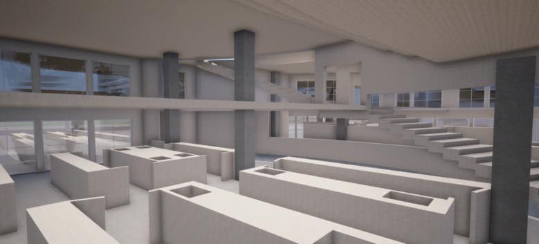 配合周遭大量挑高 且上方樓板引導 產生良好視野