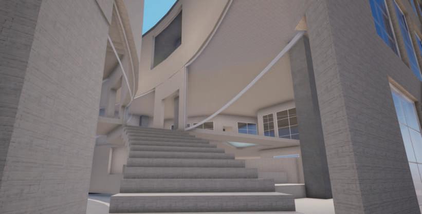 一道通往屋頂的階梯 一段既孤獨又不孤獨的路徑 享受兩側量體帶來的尺度 亦能觀察兩側人們的行為