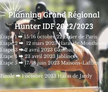 CSO : 5 février : LA CARRIERE DE LA VALLEE (91), Pro-Amat 14 mars : RIDERLAND (91), Amat, Enseignants. Hunter : 5 février : LA CARRIERE DE LA VALLEE (91), Amat. CCE : 22 janvier : JABLINES-CE (77), Pro-Amat 29 janvier : DOURDAN-EC. D’AURY (91), Amat 12 février : MAROLLES EN BRIE - UCPA (94), Amat. Dressage : 21-22 janvier : LA CARRIERE DE LA VALLEE (91), Amat 2 février : JABLINES-CE (77), Amat, Enseignants.