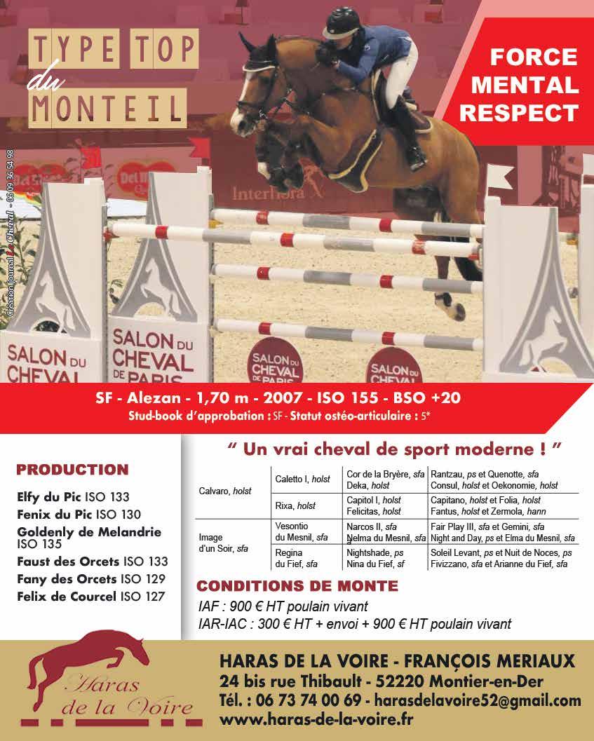 Ranch 1,4M€, 1h SPA-Piscine, 2 garages. Manège chauffé. Théâtre. 2 écuries. 24 box. 6 prés. 8 Ha. Parc complet 1,99 M€ cavaland.com Tél. 06 11 29 17 47 Site 365-366 54. Belle ferme équestre à 20 mn du luxembourg, sur 1,06 hectares avec carrière éclairée et arrosage automatique. Ter- rain de 4 hectares abris et eau. Tél. 06 84 49 52 44 Site 365-366 01. A vendre, pour CSO, Un Prince du Verger, Hongre SF 14 ans, 1m68, bai, disponible de suite. Tél. 06 07 99 63 83 pierre.criner@orange.fr Site 365-366 Pour déposer votre annonce rendez-vous sur www.lecheval.fr/PA ou www.equirodi.com (en ajoutant l’option magazine) Plus d’infos et plus d’images sur www.lecheval.fr Prochaine
