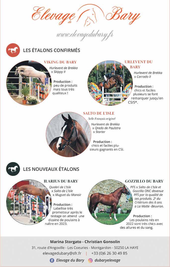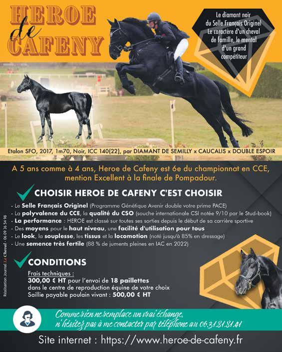 æ 2 Le Cheval - N°368 - Vendredi 31 mars 2023 ACTU - ELEVAGE Edité par Le Cheval SARL Constituée le 28 février 2004 au capital de 254 288 €, inscrite au RC Mirecourt B-403285729 2 rue de Touraine 88140 Contrexéville Tél. : 09 61 69 87 28 Abonnement 1 an : 85 € Directeur de la publication : Etienne Robert : direction@lecheval.fr Abonnements : abonnements@lecheval.fr Publicité : publicite@lecheval.fr Infographie : maquette@lecheval.fr Principaux associés : E. Robert et F. Lévy Dépôt légal : à parution Régie publicitaire : Tél. : 09 61 69 87 28 et 06 09 36 54 98 Imprimé par Roto-Champagne 52000 Chaumont N° CPPAP 0526 K 85848 ISSN: 1771-060X