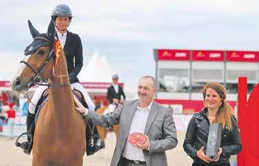 ■ Un CSO compliqué L’ultime test de saut d’obstacles construit par Jean-Pierre Cosnuau fut sévère : le temps imparti très (trop ?) court et une dernière ligne difficile n’épargnent que Karim Laghouag et ses deux chevaux. Nicolas Touzaint se contente du troisième rang avec Absolut Gold*HDC. Cela a profité à Gireg Le Coz, qui avec seulement 0,4 point de temps dépassé prend la deuxième place. La victoire finale est revenue à Karim Laghouag et Embrun de Reno, qui ont conservé tout au long du week-end leur score du dressage. Après Le Pouget (34) en 2022, il s’agit de la deuxième victoire du duo en CCI 4*-S. Karim peut s’enorgueillir du résultat de son cheval de Rio, Triton Fontaine, 4e