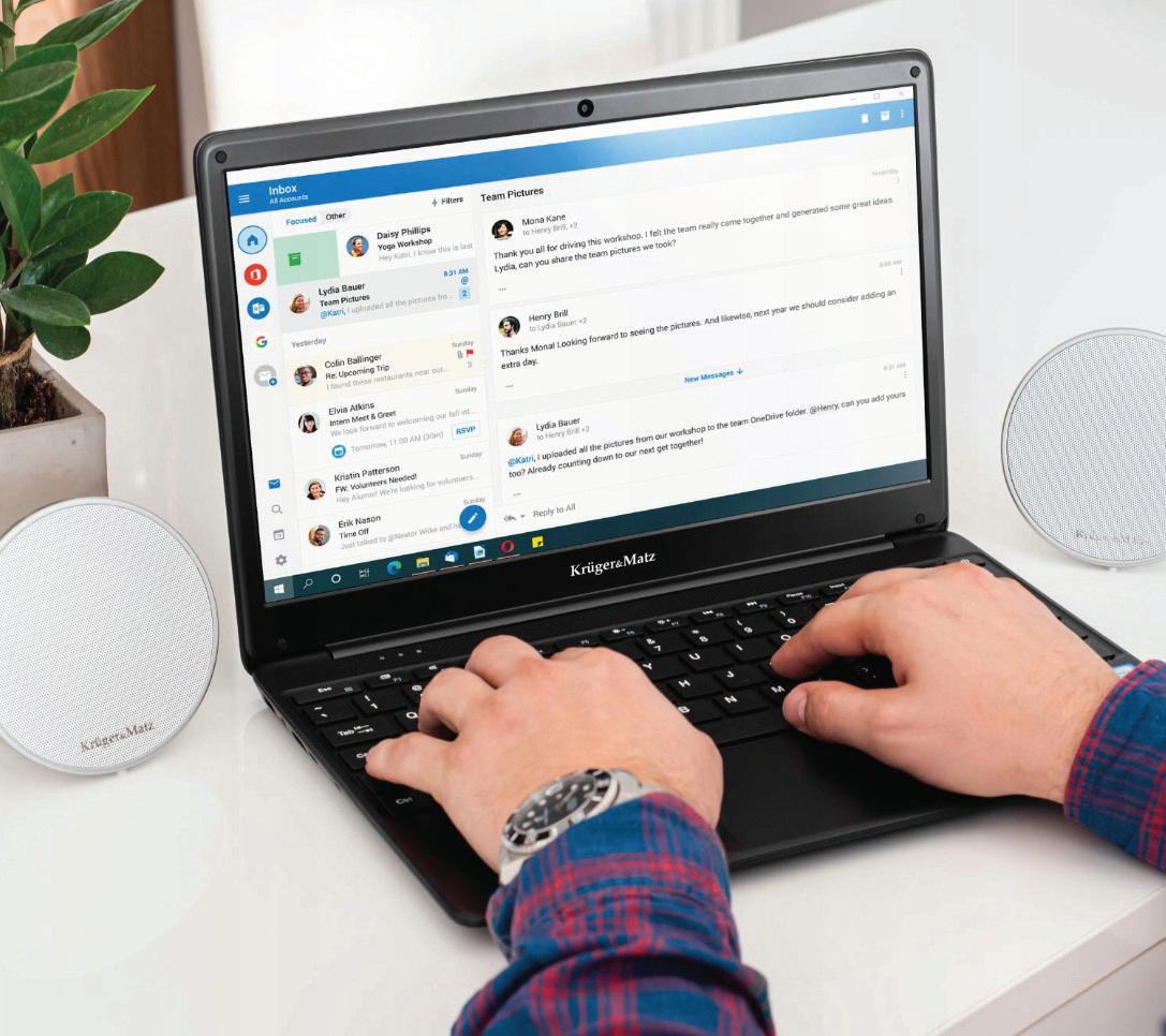 Krüger&Matz Explore 1407 are un ecran de 14 inch și specificații interesante, o carcasă neagră, ele gantă. Linia subțire și greutatea redusă a acestui laptop îl fac ușor de luat cu tine oriunde.