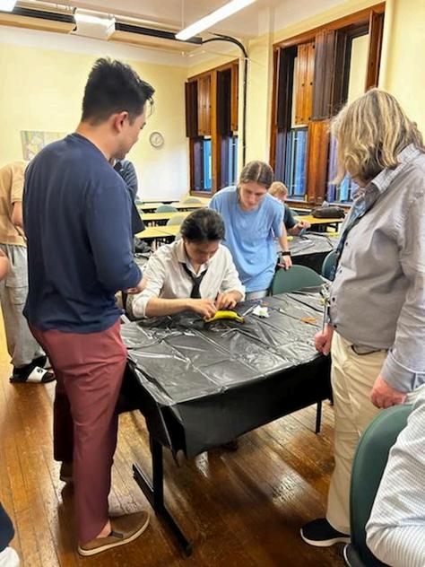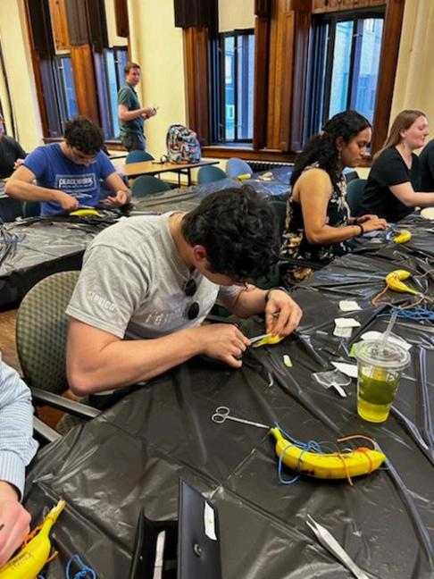 LECOM Seton Hill’s American College of Osteopathic Surgeons (ACOS), held a suturing event in May to practice operating room skills. Students were provided with an “injured banana” that they used to learn simple interrupted sutures and instrument ties. They were given two colors of yarn to practice surgeon’s knot tying with instruction and had a practice laparoscope that students took turns using for suturing and instrument-tying