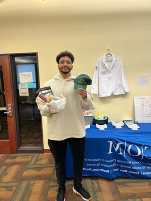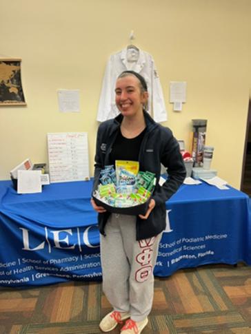 LECOM Seton Hill’s Global Underserved Medicine Club (GUM) hosted a silent auction to raise money for their upcoming trip to the Dominican Republic. Some items auctioned included an embroidered white coat, baskets, gift cards, a world map scratch-off poster, and a painting donated by Katie Raymer.