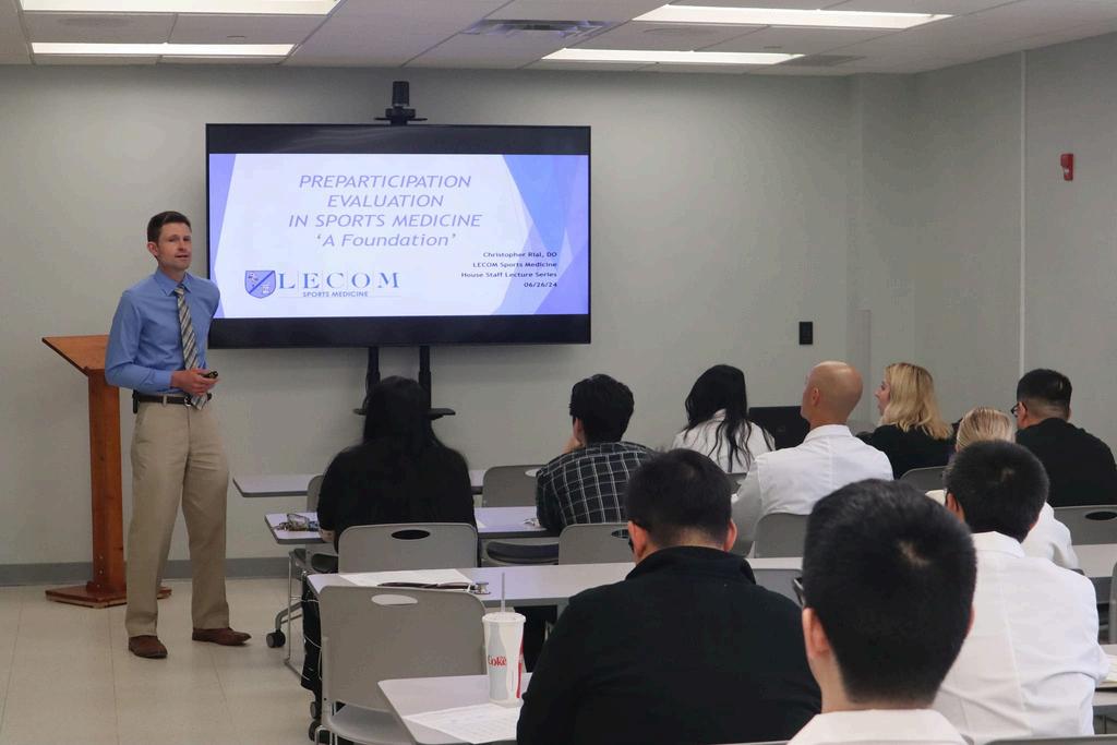 Dr Christopher Rial, Sports Medicine Specialist at LECOM Health, offers a sports medicine presentation series at Millcreek Community Hospital every other month for LECOM students interested in learning about sports medicine Call (814) 868-2170 to learn more