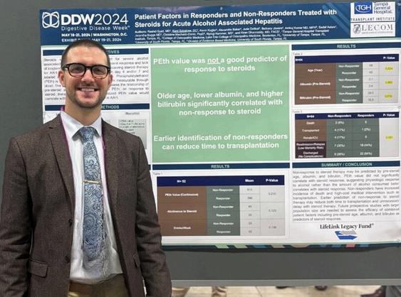 LECOM Bradenton’s Kent Sabatose, OMS2, presented “Patient Factors in Responders and NonResponders Treated with Steroids for Acute Alcohol Associated Hepatitis,” at the Digestive Disease Week in Washington, D C