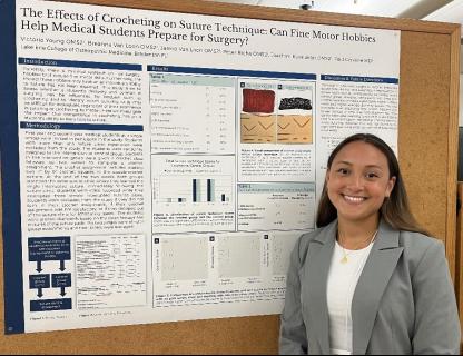 Victoria Young, Breanna Van Loon, Peter Richa, Jarrod Van Loon, Joachim Kavalakatt, and Paul Cervone (faculty) presented “The Effects of Crocheting on Suture Technique: Can Fine Motor Hobbies Help Medical Students Prepare for Surgery?”