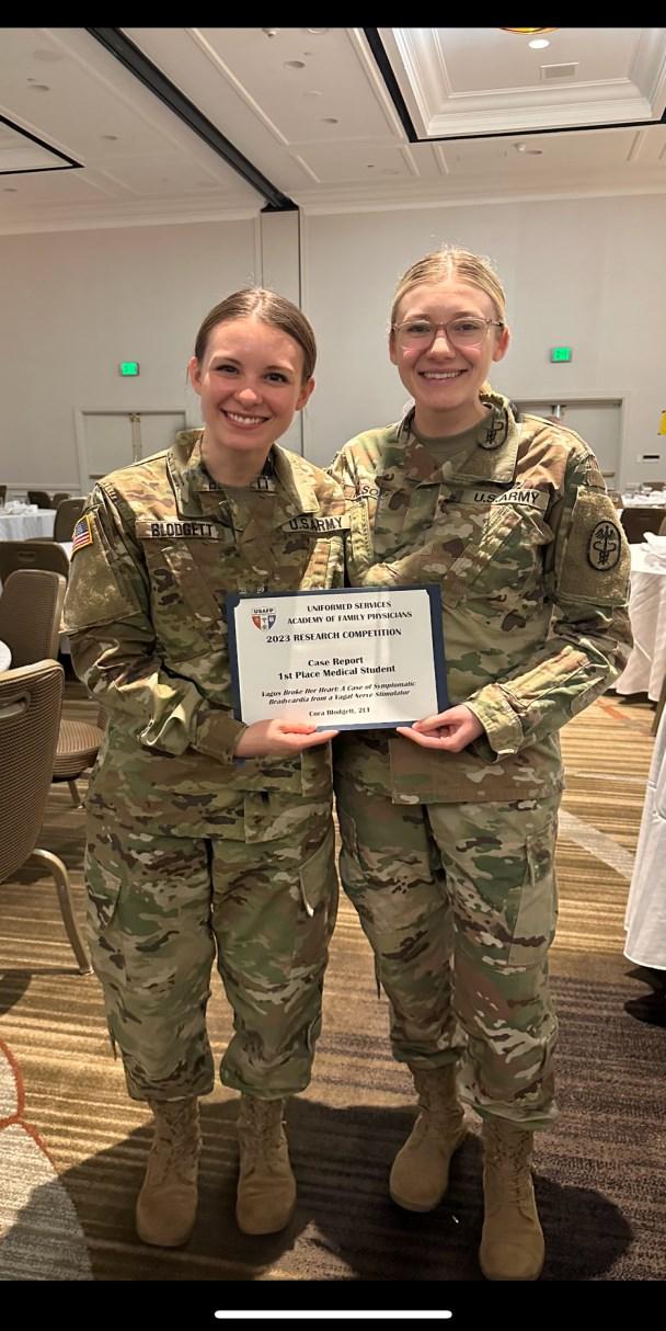LECOM at Seton Hill fourth-year student, Cora Blodgett, participated in a juried podium presentation of a case report entitled, Vagus Broke Her Heart: A Case of Symptomatic Bradycardia from a Vagal Nerve Stimulator. Her presentation, made along with Madalyn Nelson, CPT, MD, from Carl Darnall Army Medical Center, in Ft Hood, Texas, took place at the Uniformed Services Academy of Family Physicians (USAFP) 2023 Research Competition.