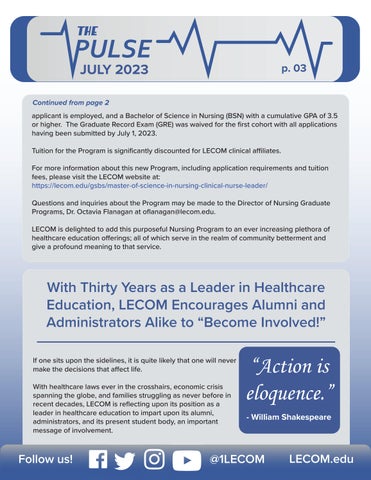 LECOM is confident in the quality of its people and of the resolute objectives of its alumni, administrators, and students alike. It is with energetic enthusiasm that LECOM hopes that each of those groups will – become involved.
