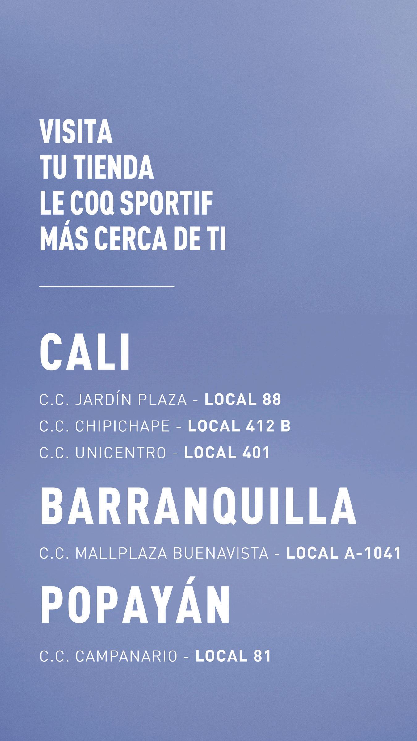 Condiciones y Restricciones: Del 3 al 30 de Septiembre 2024, obtén 40%OFF en referencias: JET STAR, LCS PRO STAR,PLATINIUMyR1100.Estebeneficioesexclusivode las tiendas concepto de le coq sportif y tienda online www.lecoqsportif.com.co. No aplica para Coq d'or, No aplica para productos crep protect. No aplica para productos América de cali. No aplica para productos RACERONE. El Beneficio NO es acumulable con otros tipos de descuentos y/o bonos. No aplica con otras formas de pago. No aplica en puntos de venta autorizados. No aplica para Gift Cards, No aplica para álbumesDeportivoCali.Encasodequeunacomprasea fuera de stock, se aplicará las políticas de fuera de stock publicadas en www.lecoqsportif.com.co, bajo ningún término se sostendrá el descuento. Se procederá a brindar alternativas como saldo a favor o devolución del dinero por la misma forma y medio en que se hizo la compra. Para mayor información comunícate con Servicio al Cliente en: Cali (2) 3827815 Ext. 118 mail: servicioalcliente@lecoqsportif.com.co