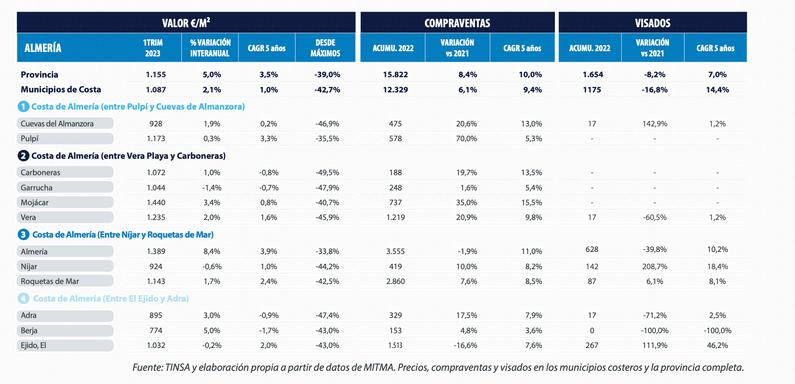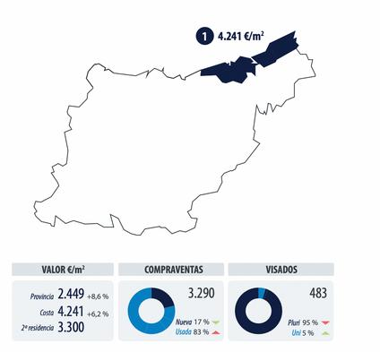 Les ventes ont connu une forte reprise, bien qu ’elles se modérent après le fort rebond de 2021 L’activité de promotion connaît également une forte reprise Elle constitue la troisième ligne de côte provinciale avec le plus de visas derrière Malaga et Barcelone.