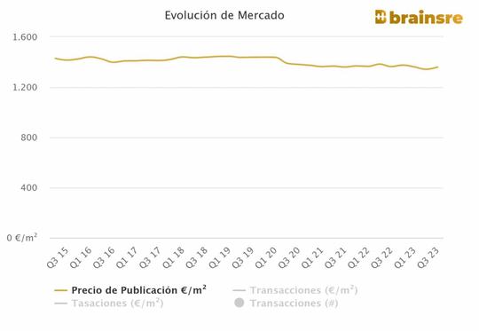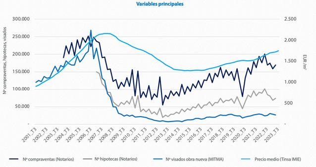 Le ralentissement global des prix est cohérent avec la baisse progressive de la demande résidentielle observée depuis la fin de l'année 2022, alors que l'impact de la hausse des taux d'intérêt de la BCE commençait à se répercuter sur l'économie Malgré cela, le nombre de transactions d'achat et de vente s'est maintenu à un bon niveau au cours de l'année 2023 en deçà des sommets atteints en 2022, mais toujours au-dessus du volume de transactions de 2019