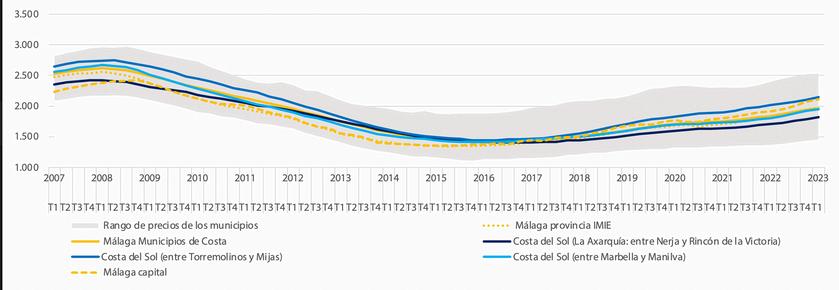e prix des maisons de vacances sur la côte augmente et est nettement supérieur au prix moyen l s'élève en moyenne à 3.100€/m2 à La Axarquía, 3.300€/m2 entre Torremolinos et Mijas et 3500€/m2 entre Marbella et Manilva, contre une valeur moyenne globale des logements dans les communes côtières de Malaga de 1970€/m2 et une valeur moyenne pour l'ensemble de la province de 1.973€/m2.