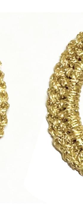 En cuanto a tu proceso creativo, ¿cómo surgen las ideas para nuevos diseños y cómo los desarrollas? Las primeras piezas fueron intervenciones sobre cadenas. Éstas me servían de soporte para el crochet, que es liviano y que necesitaba una estructura sobre la que crecer. Los eslabones de esos collares eran la base, el crochet me servía para desarrollar la parte más creativa. Muchas veces son las piezas que empleo y sus características las que me inspiran nuevas formas y combinaciones.