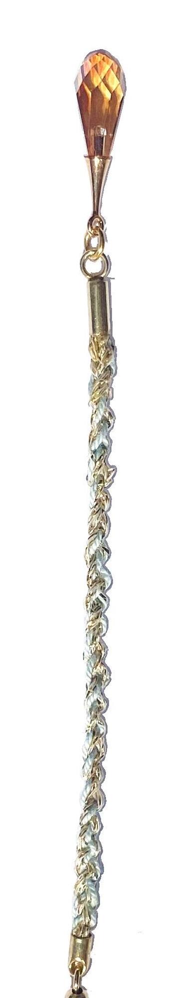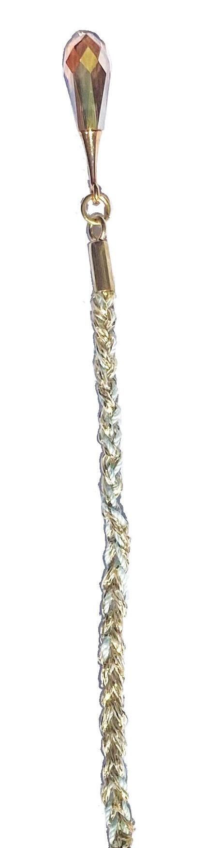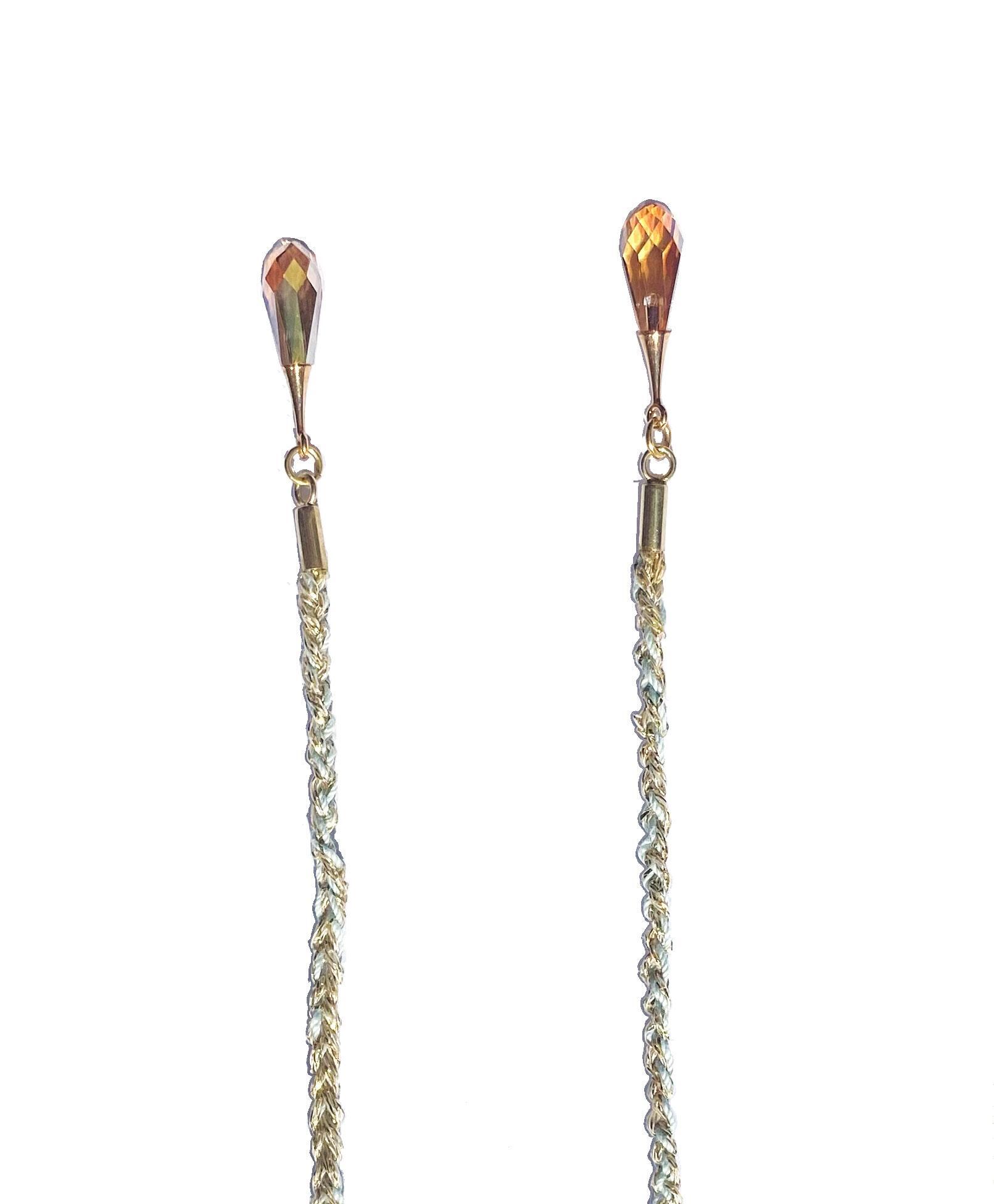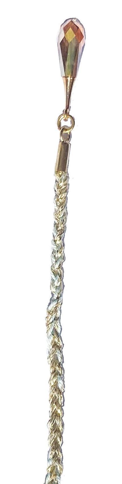 ¿Qué otros materiales has ido incorporando? Empecé combinando cristales de Swarovski y piezas metálicas en el curso de bisutería que comentaba al principio. Mi trabajo final fue un collar en el que combiné una antelina azul con una pieza central, un tanto vintage, de plata envejecida de la que colgaban pequeños cristales Swarovski. De alguna manera me atraía la estética del París del siglo XVIII, los colores pastel, los dorados... Sobre los metales que empleo, algunas piezas son de latón con baño de oro, pero últimamente empleo terminales de plata de ley con baño de oro de 18k. A medida que mi trabajo evolucionaba, quería probar materiales de más calidad. En ocasiones veo un cristal, una piedra u otra pieza que me gusta. Entonces, empiezo a imaginar qué podría elaborar con ella y con qué otros materiales podría combinarla. A veces realizo algún pequeño boceto, sencillo, en el que registro la idea o, simplemente, la recuerdo para ejecutarla más tarde.