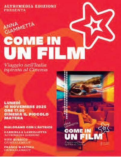 sata da un lungo e immaginario red carpet e da set e macchine da presa ovunque. Pagina dopo pagina, l’autrice ci accompagna in un percorso leggero ma ricco di spunti, tra location, festival, musei, ricette cinematografiche, citazioni e scorci del nostro Paese che sono diventati protagonisti silenziosi di film che si fanno ricordare”.