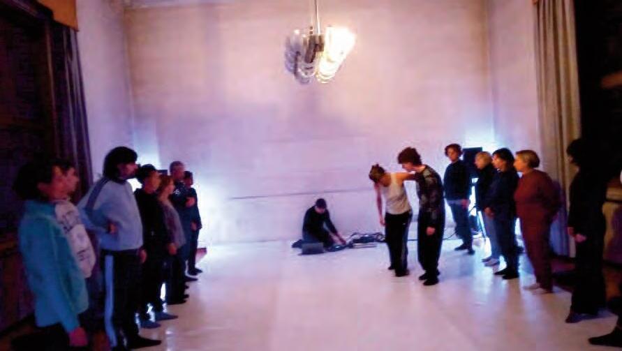 to questo rientra nel tentativo di creare un rapporto tra lo spazio, l'arte e la dimensione performativa e quindi questa performance ha il compito di introdurre come dire una sorta di piscina in cui le persone si possono incontrare come performer e i performer al tempo stesso cercare di esprimersi in modo particolare attraverso il corpo in una dimensione comunitaria. L'interscambio personale? Certo a partire da se stessi, quindi una sorta di conoscere il proprio essere, per poi come dire entrare in relazione con gli altri. Man mano tutta la performance attraverso vari passaggi che si creano al momento cerca di costruire questo tipo di ambiente e anche di comunicazione. Michele Kappa è la compagnia che organizza, loro portano in giro un po' questa esperienza e chiaramente ovunque si fa accadono cose diverse, si realizzano momenti diversi. La performance ha questa costanza di essere in continua evoluzione e come se fosse un organismo che si rinnova volta per volta ogni qualvolta viene. Il protagonista è Biagio Caravano».
