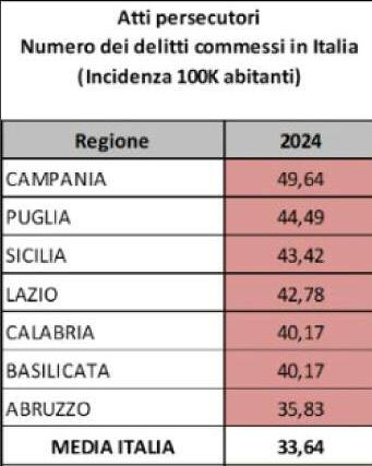 Stalking, Basilicata in “zona rossa”