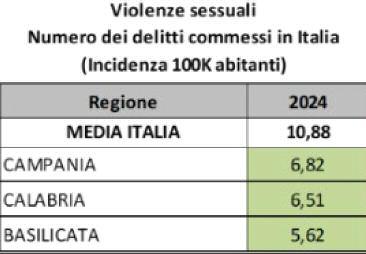 Secondo la Polizia criminale la regione ha la più bassa incidenza di violenze sessuali in Italia