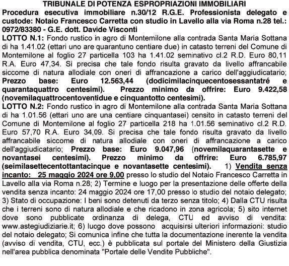 APPUNTAMENTO PREVISTO A POTENZA DOMENICA ALLE 11:30