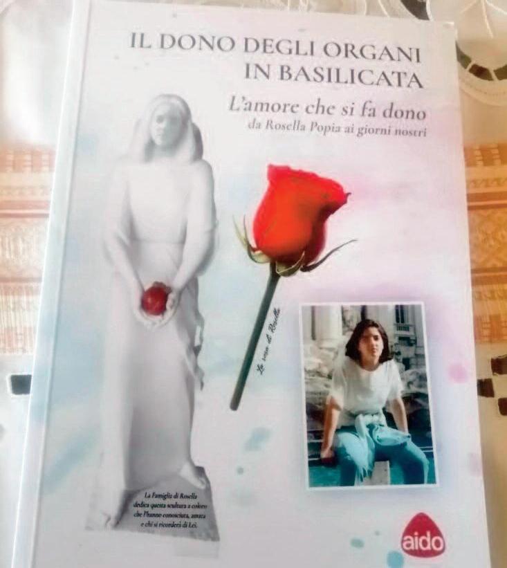La caduta le è fatale quel 27 sera, finisce in coma e il giorno dopo la morte cerebrale Ospedale d i T a r a n t o “ I l m e d i c o c i v e n n e incontro costernato dicendoci che Rosella ci aveva lasciati Io e mia m o g l i e c i g u a r d a m m o n e g l i o cchi – ancora vivo il ricordo nelle parole di papà Fabiano – e ricord a n d o q u a n t o R o s e l l a c i a v e v a detto, abbiamo chiesto al medico di prelevare i suoi organi” Quel rispetto della volontà della figlia inaugura in Popia l’inizio di una m i s s i o n e p e r l a B a s i l i c a t a : d i ffondere la cultura della donazione degli organi attraverso la costituzione di gruppi Aido a livello provinciale e regionale Il papà ricorda la sua Rosella co-
