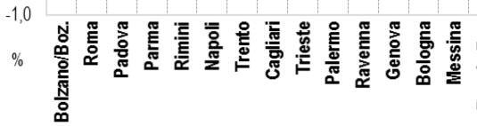 vata si osserva a Bolzano ( + 2 , 0 % ) e a R o m a ( + 1 , 5 % ) , m e n t r e l e p i ù c o n t e n u t e s i h a n n o a P oten za co n u n a v ar iazio n e nulla (0,0%) e ad Aosta (0,3%)
