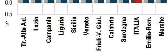 A l l ’ o p p o s t o , i n v e c e , i l T r e n t i n o A l t o A d i g e (1,6%), il Lazio (1,4%) e appaiate ad 1,1%, Campania, Liguria e Sicilia