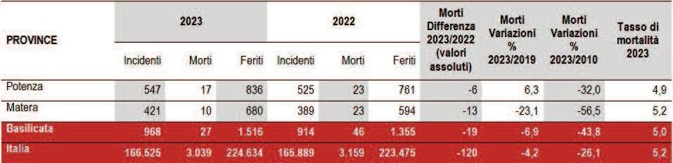 nel 2023 il costo dell’incidentalità stradale con lesioni alle persone è stimato dall’istat in circa 130mln di € per la basilicata