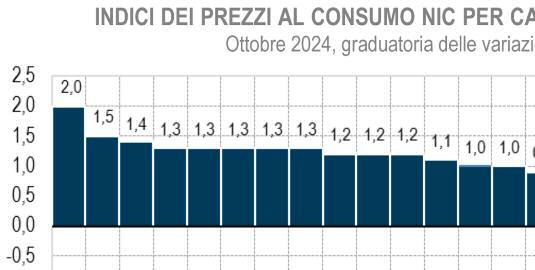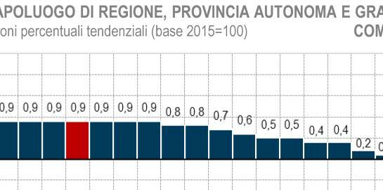 Tra i capoluoghi delle Regioni e delle Province autonome e nei comuni non capoluoghi di regione con più di 150mila abitanti, in riferimento al mese di ottobre, l’inflazione più ele-