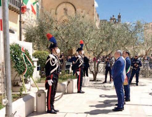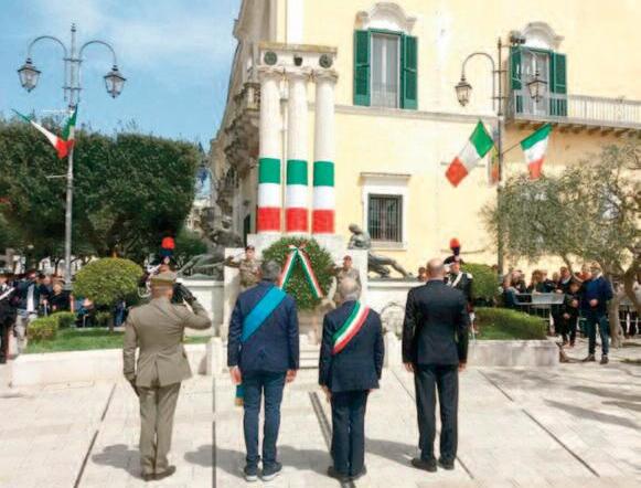 M AT E R A I n i z i e r a n n o alle ore 9 30, con la dep o s i z i o n e d e l l a c o r o n a d ’ a l l o r o a l “ C i p p o ” d i via Lucana, le celebrazioni per il 79esimo anniversario della Liberaz i o n e d ’ I t a l i a I l p r ogramma proseguirà alle ore 10 presso la chiesa di S a n t a C h i a r a , d o v e s i svolgerà la Santa Messa o ff i c i a t a d a S u a E c c e llenza monsignor Anton i o G i u s e p p e C a i a z z o , arcivescovo di MateraIrsina e vescovo di Tricarico Quindi, alle ore 11 in piazzetta Pascoli, il raduno di autorità e associazioni combattentistiche e d’Arma, per la partenza del corteo alle o r e 11 1 5 v e r s o p i a z z a Vi t t o r i o Ve n e t o , d o v e dalle ore 11 30 si susseg u i r a n n o g l i o n o r i a l l a massima autorità, l’alzabandiera, gli onori ai Caduti, la deposizione della corona d’alloro al monumento ai Caduti e poi gli interventi nell’ordine: Sanya Bonelli, presidente della Consulta degli studenti della provinc i a d i M a t e r a ; d e l p r ofessor Franco Lisanti, orfano di guerra; della dottoressa Carmela La Padula, presidente del Com i t a t o p r o v i n c i a l e dell’Associazione nazionale Partigiani d’Italia; del presidente della Provincia, Piero Marrese e d e l s i n d a c o d i M a t e r a , D o m e n i c o B e n n a r d i Presenzieranno alla cerimonia il picchetto armato a cura dei militari alla