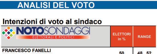 Secondo Noto circa 800 voti potrebbero separare Fanelli dalla vittoria al primo turno. FDI a un improbabile 28% e nessuno calcola il disgiunto