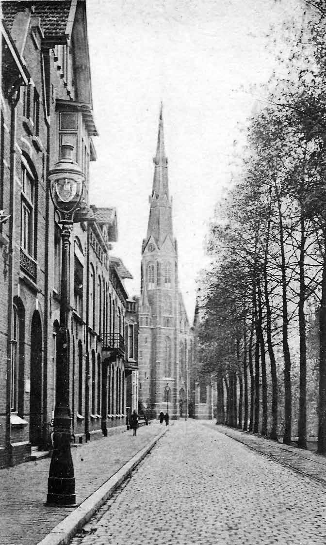 Hoek Markt-Marktstraat met een winterse lindeboom. Een foto van vóór 1916.