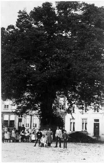 Een van de beide lindebomen die sinds de zeventiende eeuw de Markt sierden. In 1916 werden ze wegens ziekte gekapt.