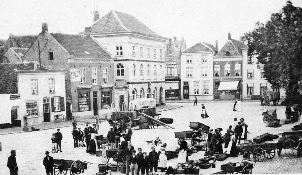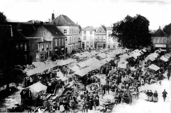 Een marktdag in de zomer van 1892 vastgelegd door fotograaf H.J. Tollens, die meer fraaie plaatjes van Eindhoven rond de eeuwwisseling maakte. Het is een komen en gaan van handelaren en klanten en een wirwar aan karren en kramen zoals op elke dinsdag, sinds het verkrijgen van stadsrechten in 1232, de vaste dag voor de weekmarkt.
