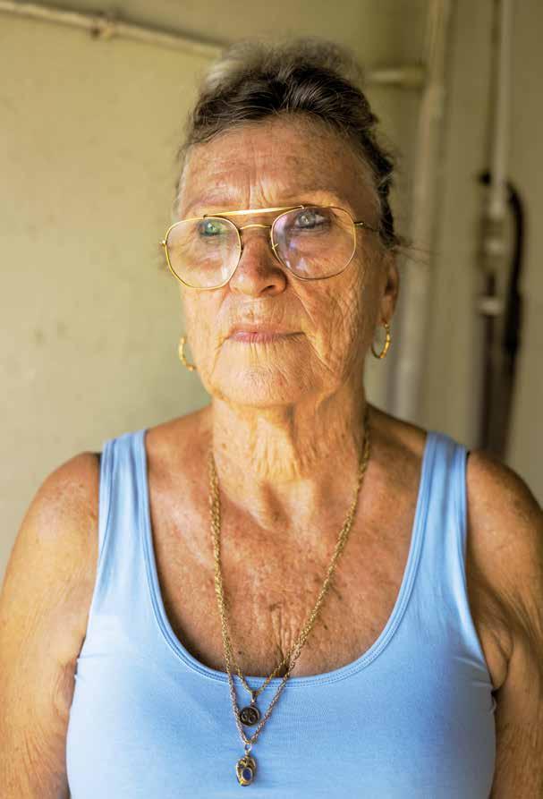 ‘Eigenlijk zijn we altijd bezig. Dat hebben we van huis uit meegekregen. M’n vader had vroeger melkkoeien, maar de melkprijs was destijds zo laag dat we overgestapt zijn op slachtvee. De zeboe’s lopen hier vrij rond, achter ons huis en aan de overkant van de weg. Ik ben veel op het land. Ik voel me dan heerlijk. Als ik werk vergeet ik alles en ben ik honderd procent bezig met wat ik doe. Toen ik jong was, gingen we naar een soort zwartekousenkerk. Twee of drie keer per week hadden we een samenkomst bij mensen thuis. Je mocht daar niets. Geen make-up, geen lange broek en geen feesten. Mijn moeder had een keer lippenstift op. Daar werd ze flink op aangesproken. Ik was blij dat ze er toen uit is gegaan. Ik bid elke avond voor het slapen, maar ik ga niet meer naar de kerk.’ - DRIEKE VAN RAVENSWAAY