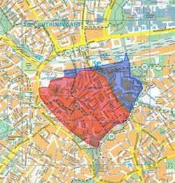 De grens tussen de twee delen wordt gevormd door de Steenstraat en de Kramerstraat.