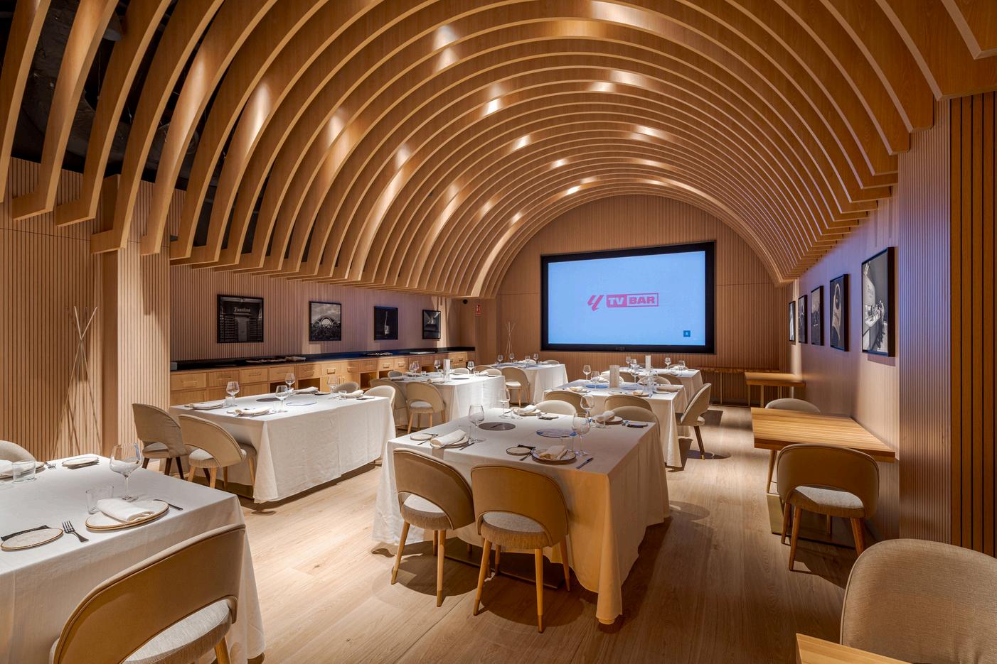 The narrative flows from the glass-enclosed cellar to the Cuba Room, where LED screens and monitors are naturally integrated into the architecture, guiding visitors through a contemporary and sophisticated journey.