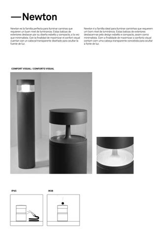 —Newton Newton es la familia perfecta para iluminar caminos que requieren un buen nivel de luminancia. Estas balizas de exteriores destacan por su diseño esbelto y compacto, a la vez que minimalista. Con la finalidad de maximizar el confort visual cuentan con un cabezal transparente diseñado para ocultar la fuente de luz.
