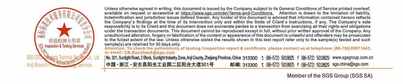 Signed for and on behalf of SGS-CSTC Standards Technical Services Co., Ltd. Anji Branch