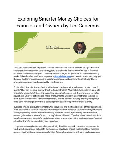 Lee Generous is a wealth advisor and founder of Generous Wealth Management, a virtual advisory firm based in Massachusetts. He holds several respected credentials, including Chartered Financial Consultant (ChFC), Enrolled Agent (EA), and Dope CFO Certified Advisor, representing his investment strategy, tax planning, and wealth management expertise. His firm provides comprehensive financial planning for high-net-worth individuals, families, and business owners through an integrated approach that combines tax, investment, and legacy planning. Born in Dorchester and raised in Marshfield, Massachusetts, Lee developed a strong sense of discipline early in life. Diagnosed with type 1 diabetes as a toddler, he learned the importance of structure and precision. His passion for finance began when he used his paper route savings to buy his first mutual fund. He went on to earn dual bachelor’s degrees in Economics and Political Science from the University of Massachusetts Amherst in 2004. Lee Michael Generous began his professional journey at Fidelity Investments in Boston, gaining broad experience in pricing, cash management, and family office services. He later became a Relationship Manager, serving high-net-worth clients and developing long-term financial strategies. In 2015, he joined an LPL advisory firm in Braintree, Massachusetts, where he managed a large client base and helped double the firm’s assets through disciplined, client-centered planning. In 2021, Lee Generous founded Generous Wealth Management, turning his vision of a family office-style practice into reality. The firm offers clients personalized and proactive guidance to simplify their financial lives. Alongside traditional wealth management, Lee specializes in advising cannabis and hemp businesses as a Dope CFO-certified advisor and serves on the National Cannabis Industry Association’s Banking and Finance Committee.
