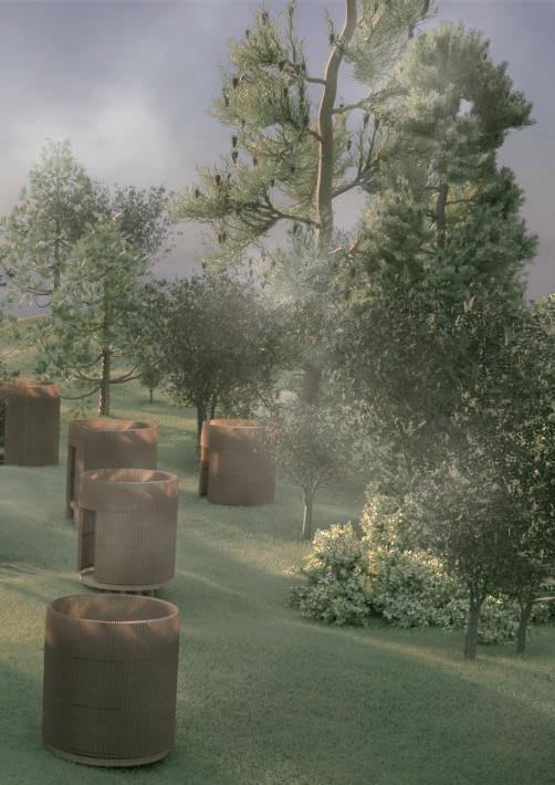 The design challenge is to strike the balance between visibility and invisibility and helping visitors to enjoy the ambiguous border between artificial landscape and nature. With a hypothesis of privacy, the design aims to help the user to enjoy the breeze and the coolness flying through the bottoms while using the toilet, and on the other hand, create visual lightness and transparency.